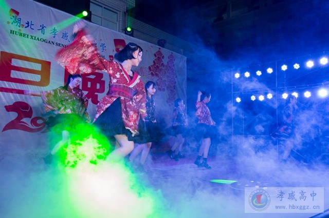 舞台上,悠扬的歌声、娴熟的乐器演奏、青春动感的舞姿、滑稽幽默的小品,彰显了孝高学子的青春活力,展示孝高学子的多才多艺。西藏生表演的具有"东方吉普赛"之称的《雪域热巴舞》给我们带来不一样的视听感受;小品《开学了》、《考试以后》、《谁拿走了我的99分》构思精妙,紧贴实际;相声《相声新说》、《您真有文化》幽默诙谐,令人捧腹;歌曲串烧、歌伴舞、舞蹈等或抒情委婉,或沧桑沉重,或激情四射,各具特色;由学生填词谱曲的歌曲《蓝瓦》,则体现孝高学子在艺术上的综合实力;整场活动热闹非凡、高潮迭起、掌声不断。