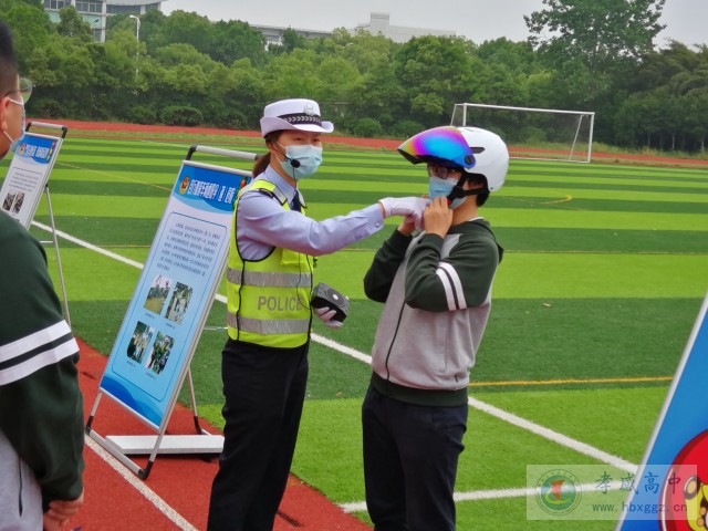 2020年5月6日,开学复课的第一天,为进一步提升摩托车、电动自行车、汽车驾乘人员驾乘防护水平,有效减少交通事故死亡率,孝感市公安局交警直属一大队宣传中队在孝感高中田径运动场开展了“一盔一带”安全守护宣传教育活动。活动通过讲解、演示和图片展等形式进行,让在校师生受到了深刻的教育。孝感高中领导参加了该活动。孝感市副市长吴婕、市教育局副局长王建军等到现场指导。