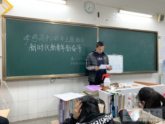 对于教育者来说,主题班会,是一种行之有效的德育思想传播方式。班会课,是班主任思想引领的主阵地,活动动员的前沿哨。在全市开展“弘扬爱国奋斗精神、建功立业新时代”主题活动的当下,全市教育系统组织开展“新时代新青年新奋斗”演讲活动。孝感高中各班级也积极行动起来,利用周三班会的契机,组织本班学生代表3-5人登台演讲。他们结合自身的学习生活体会,畅谈感想,抒发情怀,提升对学习动力的理解,增强对学习方法的探究,带动大家全身心投入到学习中。身边的榜样,可观,可学,可见。这就是最好的激励!